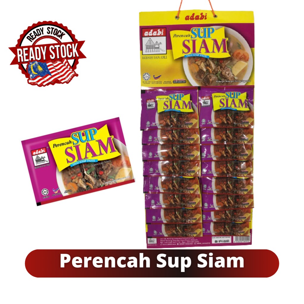 Adabi Perencah Sup Siam 40g from unit3.my Sedikit udang kering dikisar halus. Resepi sup tulang siam banyak tau khasiat sup ni. 1/2 kilo ekor lembu dibersihkan, 1 bungkus perencah sup siam adabi, 1 bungkus sup bunjut tulang adabi, 2 biji bwg besar sederhana dihiris, 4 ulas bwg putih dihiris, sedikit halia dihiris, sedikit lengkuas diketuk, sebatang serai diketuk, 1 sudu sos ikan nampla. Baca di link baru : 2 peket perencah sup siam adabi consumer. Saya guna perencah sup siam adabi. Masukkan serai dan perencah adabi consumer (goreng sekejap). Ianya paling hampir , paling mudah untuk dapatkan rasa sup siam yang sedap.
